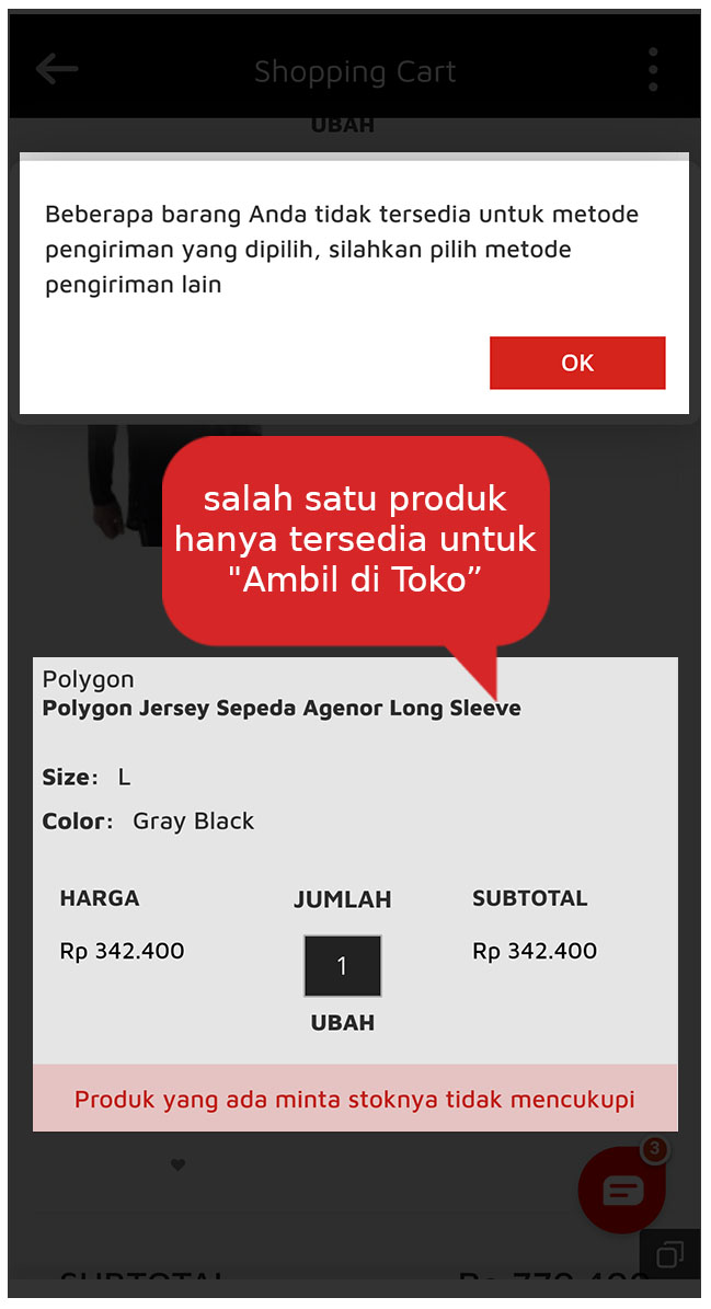+ Versi MobileBerikut pesan informasi jika salah satu produk dikeranjang belanja Anda yang tidak ready stok di Toko Rodalink:+ Versi DekstopBerikut pesan informasi jika salah satu produk dikeranjang belanja Anda yang tidak ready stok di Toko Rodalink:Informasi mengenai stok dapat Anda cek disini.