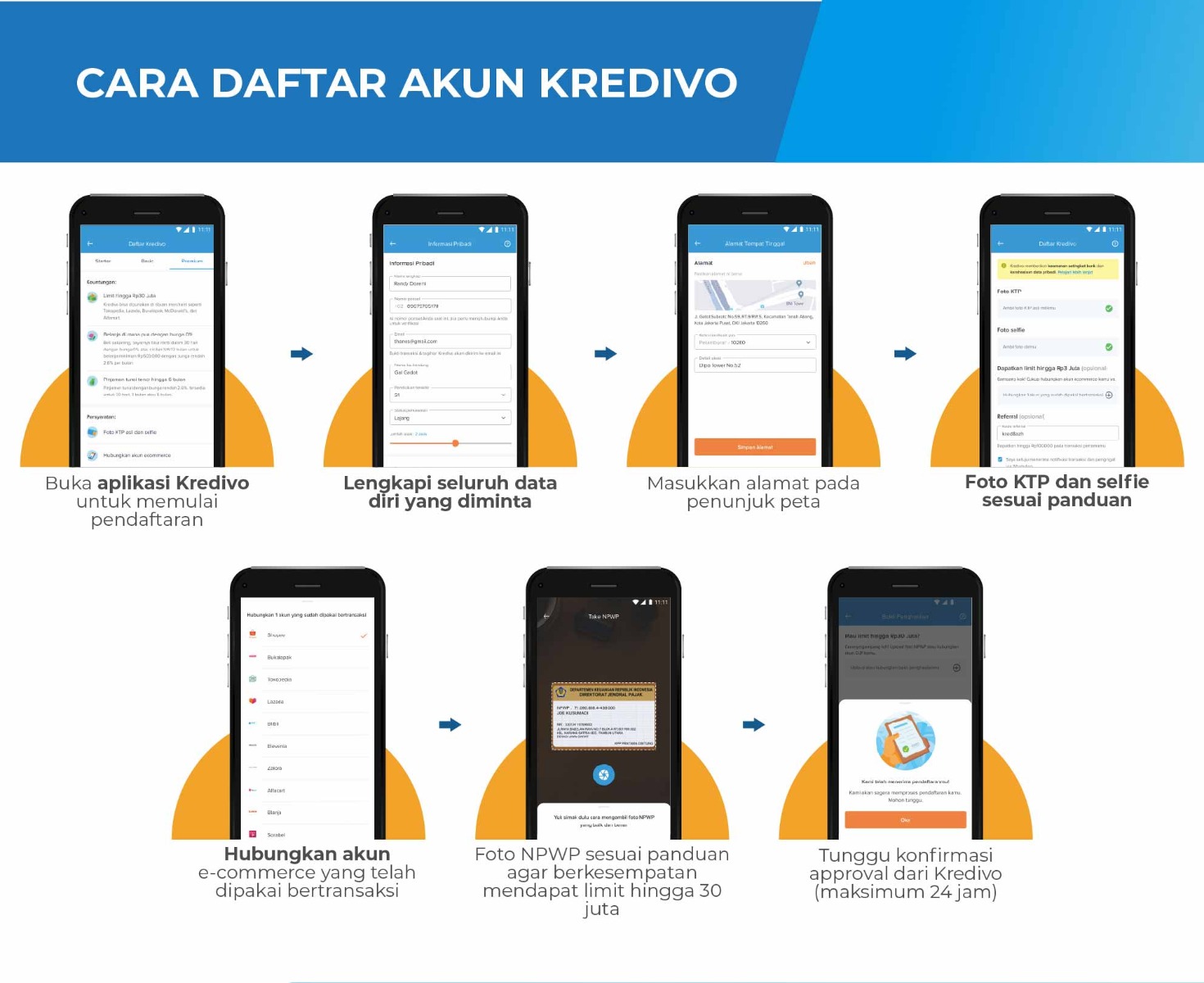 Anda bisa mendaftar melalui aplikasi Kredivo atau melalui website kami di app.kredivo.com.