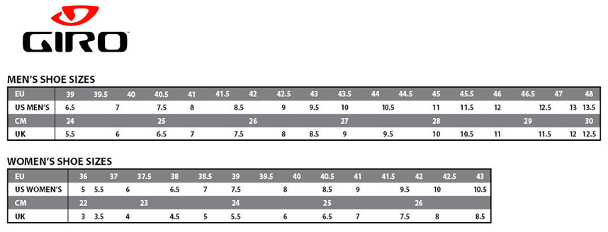 Bike shoes are sold in either U.S. or European sizing depending on the manufacturer.