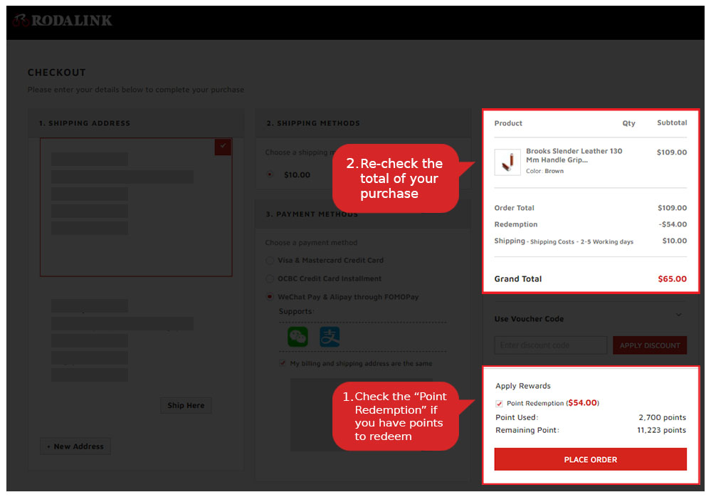 You can redeem your points at Rodalink stores or on Rodalink.com/sg.