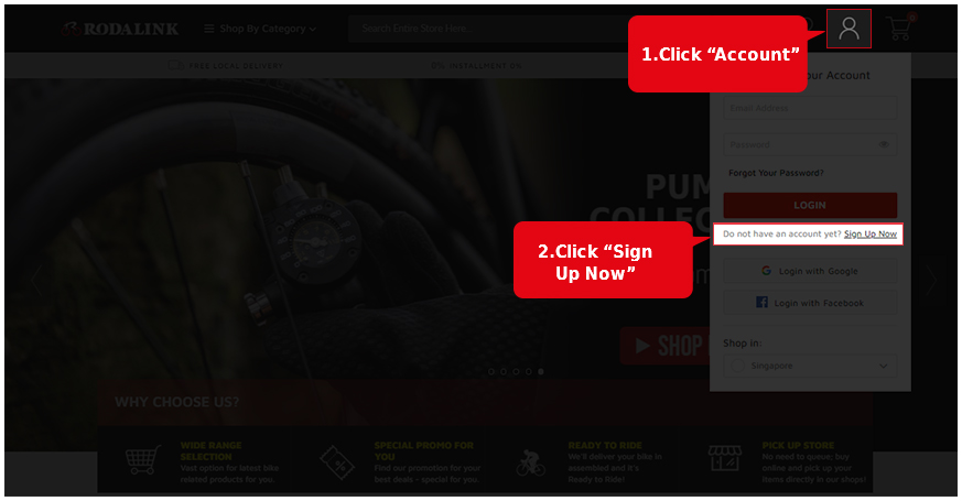 + Mobile version1. Login to your Rodalink.com/sg first