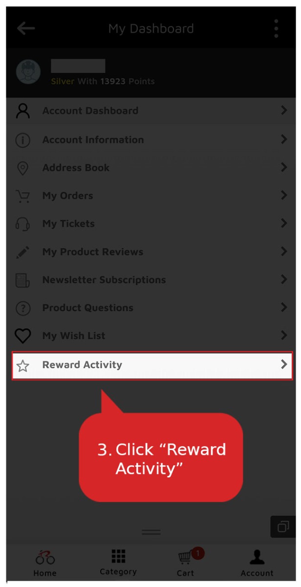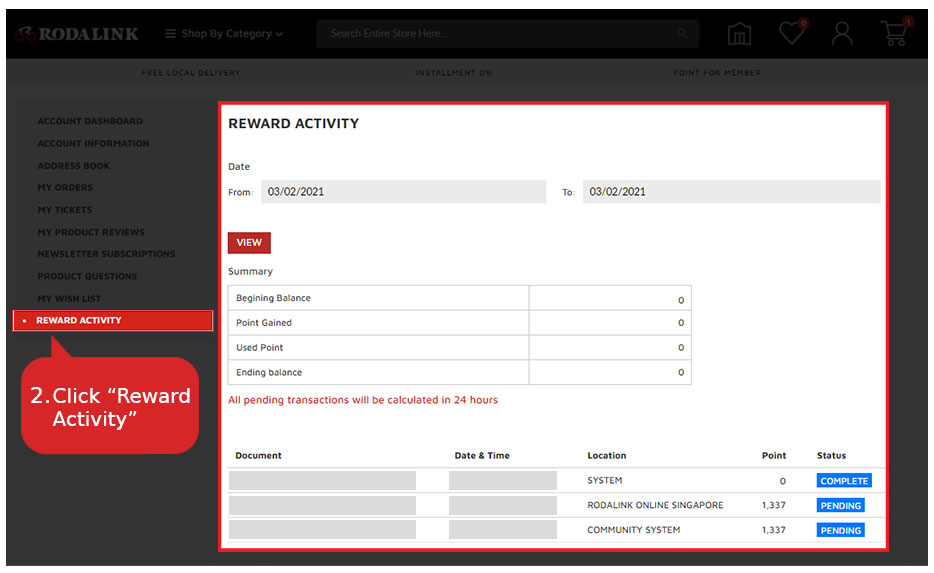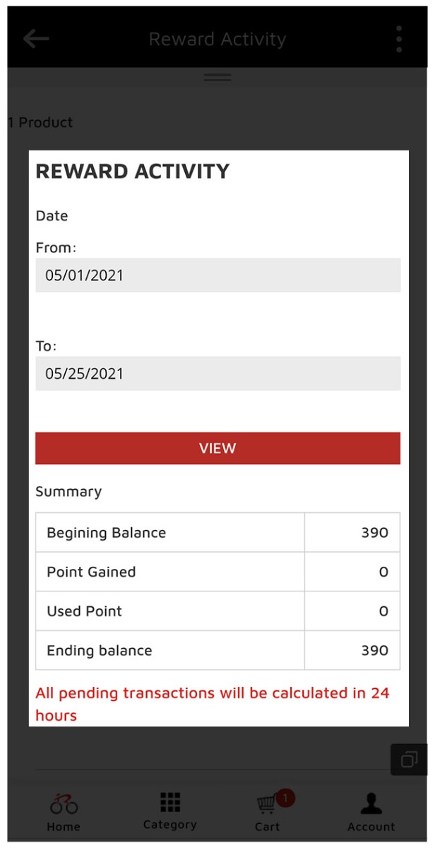2. Select the "Reward Activity" menu and you can check the point information as below: