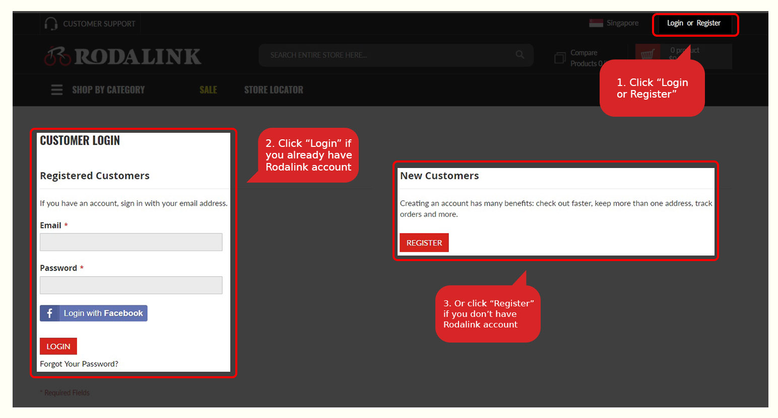 + Mobile version1. Login to your Rodalink.com/sg first